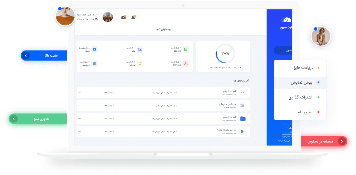 در فضای ابری ما فایل ها را با هر فرمتی بارگزاری کنید و از هر مکان و هر وسیاه ای به آن دسترسی داشته باشید.